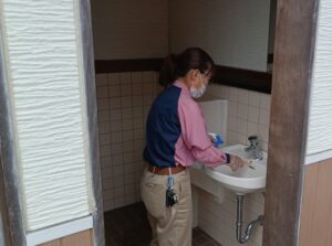 弊社が所属する三豊・観音寺ビルメンテナンス協会の活動の一環として、観音寺市内へ訪れた際、気持ちよく過ごしていただけるようにと、毎年秋祭りが行われるこの時期に実施しております。観音寺市役所周辺をはじめ、グループごとに分かれて市内13カ所の公衆トイレの清掃ボランティア活動を行いました。